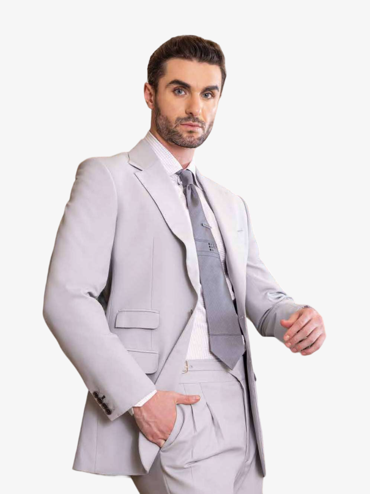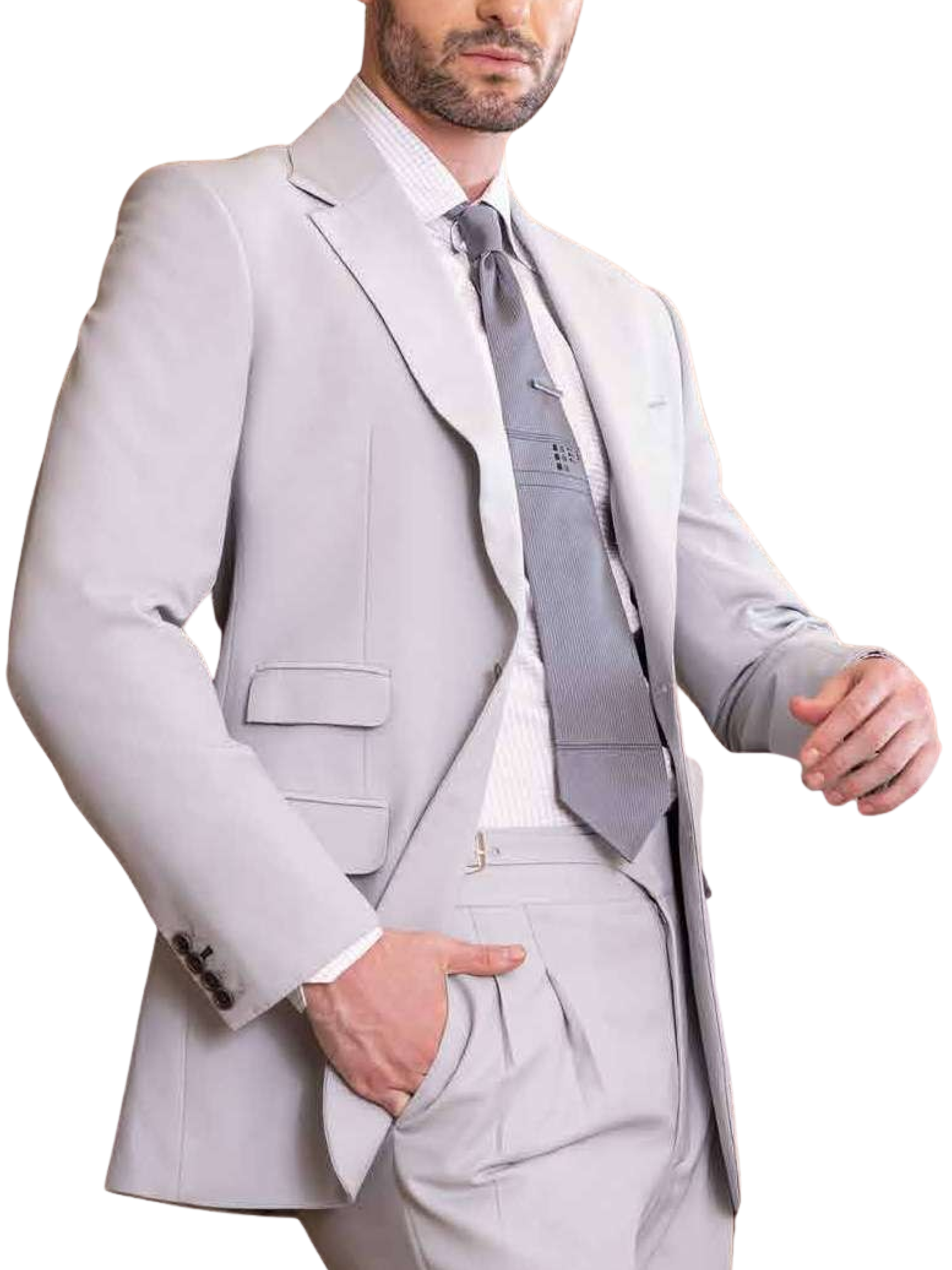 Azzimato Vercelli has a single-breasted notch lapel jacket with 2-button and 2-ticket pockets Classic suit; the jacket is co-ordinated with complementing trousers.